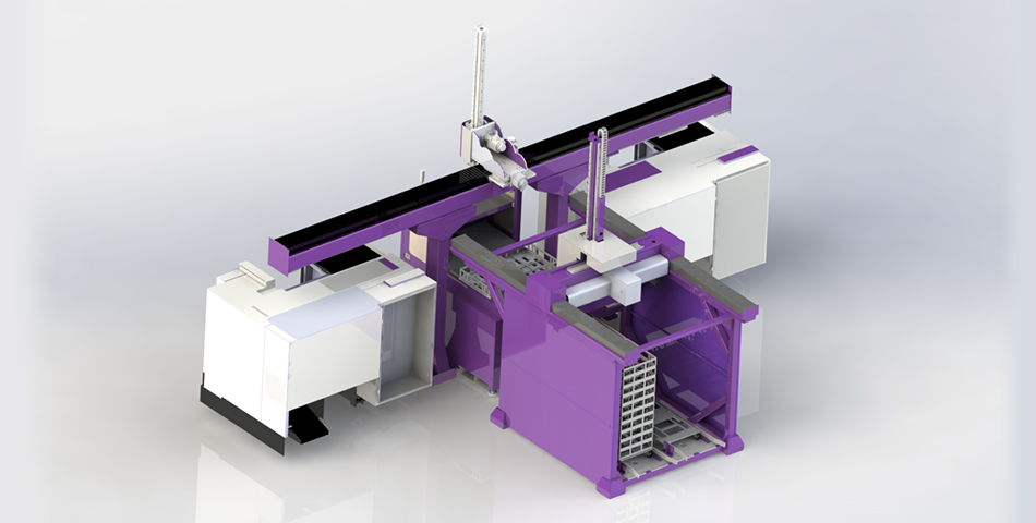7. HB系列桁架機器人機加工自動化生產線可根據工藝需求組合多臺數控機床組成生產線,可組合成為一拖二機床機加工自動化生產線,標準為一拖二機床自動化產線,并可依據工藝需求混合搭配數控車床、加工中心、數控磨床;
